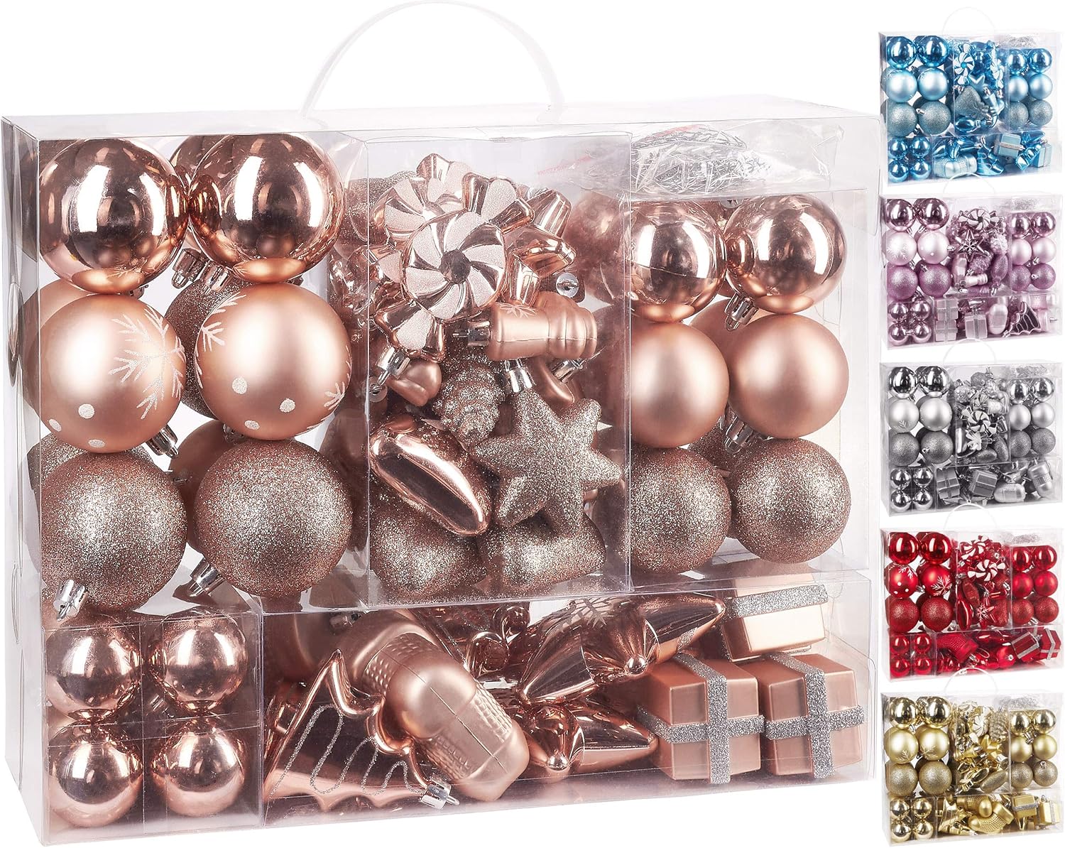 Rose gold ornaments and decorations are a new spin on the traditional silver and gold approach.